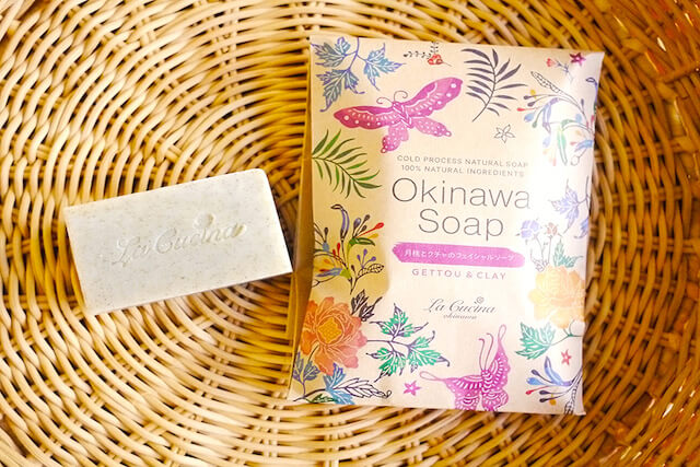 「La Cucina」は、スキンケア効果の高い石けんとして知られており、エキストラバージンオイル・ホホバオイル・シアバターなどに、青パパイヤ・月桃・ハイビスカスといった沖縄らしい素材でつくられています。