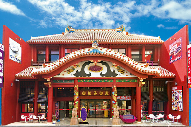 また、第26回全国菓子大博覧会・観光庁長官賞を受賞した「紅いも生タルト 沖縄きらり」もおすすめ! カスタードクリームと紅いもが2層になったクリーミーな味わいは「御菓子御殿」だけの美味しさ。首里城をイメージした店内のデザインにも注目したいところです。