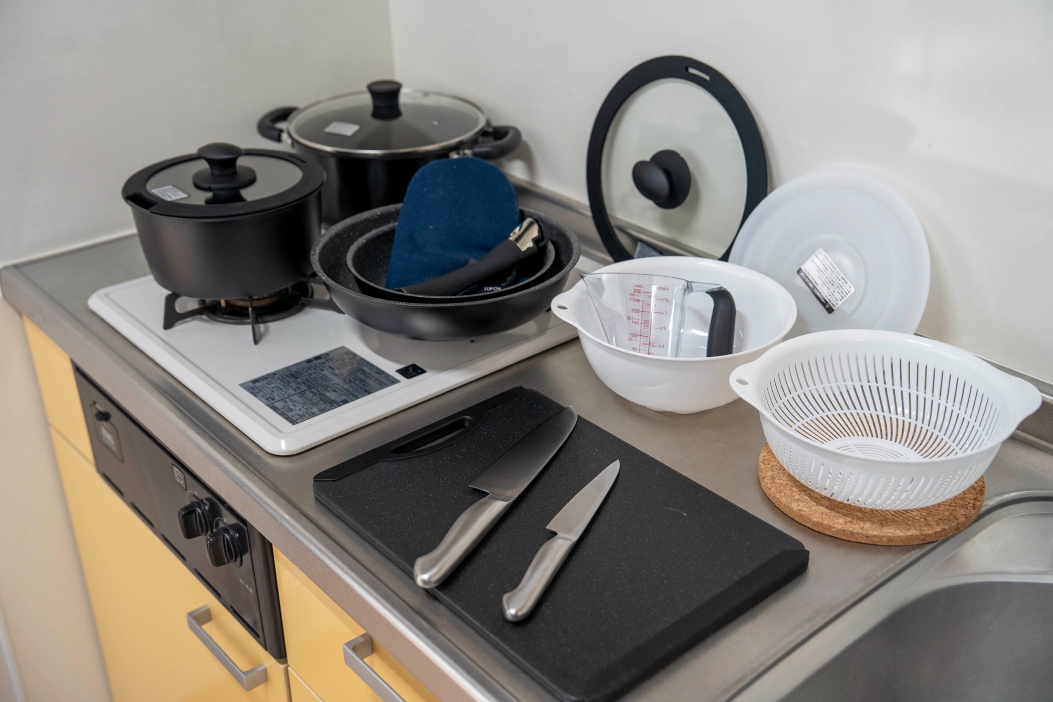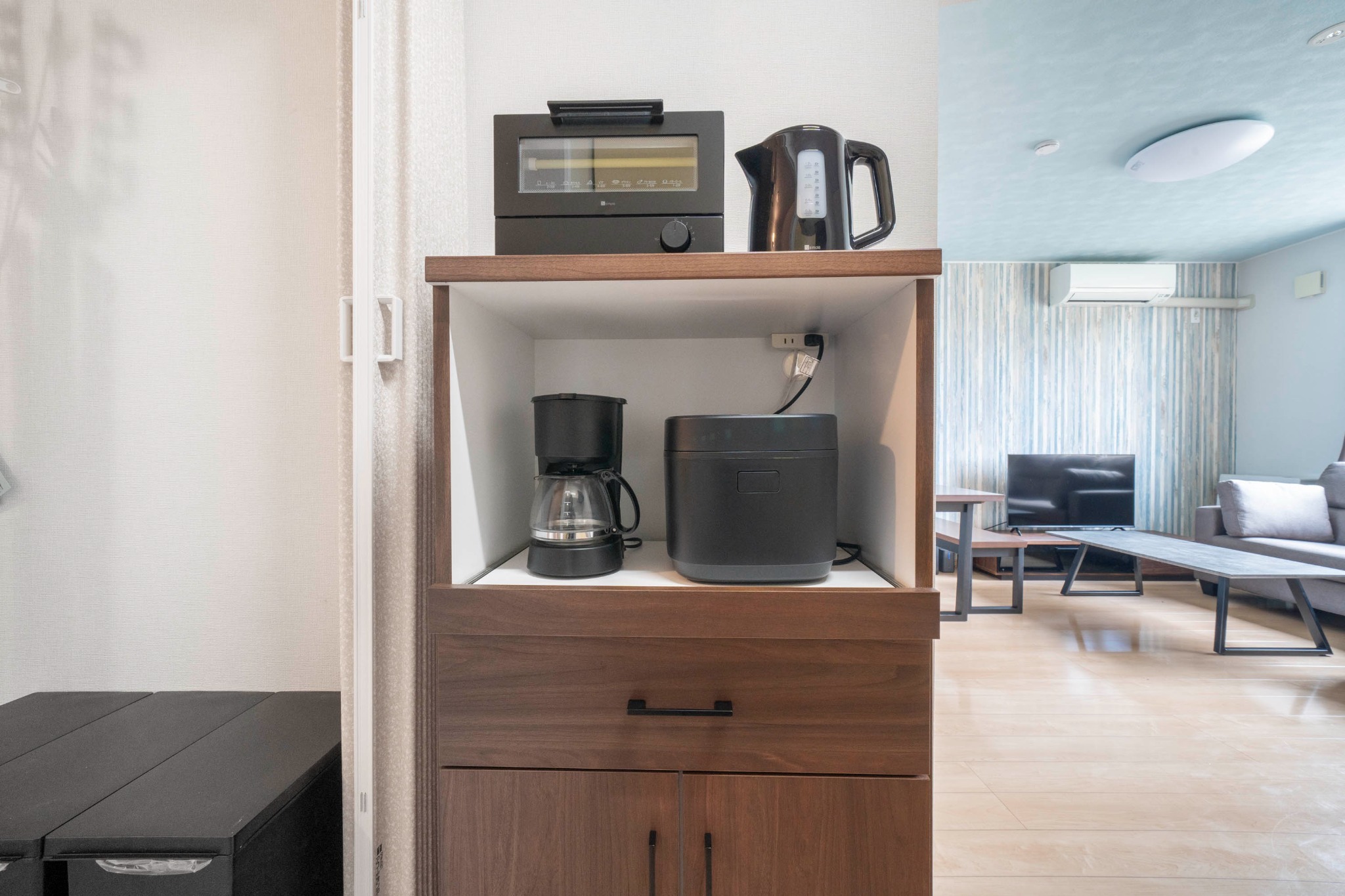 テレビ、インターネット接続(無線LAN形式)、冷蔵庫、ドライヤー、アイロン、石鹸(固形)、シャンプー、ハミガキセット