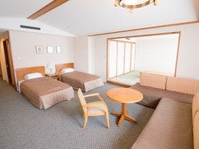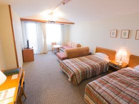 テレビ、衛星放送(無料)、電話、インターネット接続(無線LAN形式)、湯沸かしポット、お茶セット、冷蔵庫、ドライヤー、ズボンプレッサー(貸出)、電気スタンド(貸出)、アイロン(貸出)、加湿器、洗浄機付トイレ、石鹸(液体)、ボディーソープ、シャンプー、リンス、ハミガキセット、カミソリ、シャワーキャップ、くし、タオル、バスタオル、浴衣、スリッパ、金庫