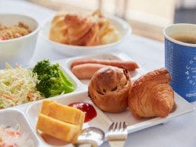 - 部屋が広めです。洋服掛けも十部ありました。浴槽も、3点ユニットにしては広めです。アメニティ(新聞も)はフロント前でほしいものだけ持っていき、スリッパはフロントで申告するという形式です。朝食は種類が多くはありません、サラダの旅行食野菜がもう少し欲しいですが、コストを考えれば十分です。平日だったためか、混雑がなく、ゆっくりいただけました。