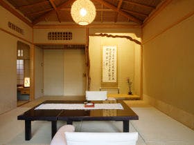 テレビ、衛星放送、衛星放送(無料)、ビデオデッキ(貸出)、電話、インターネット接続(無線LAN形式)、湯沸かしポット、お茶セット、冷蔵庫、ドライヤー、ズボンプレッサー(貸出)、電気スタンド、アイロン(貸出)、加湿器、個別空調、洗浄機付トイレ、石鹸(液体)、ボディーソープ、シャンプー、コンディショナー、ハミガキセット、カミソリ、シャワーキャップ、くし、ブラシ、タオル、バスタオル、浴衣、くつろぎ着・たび、くつろぎ着の作務衣、スリッパ、金庫
